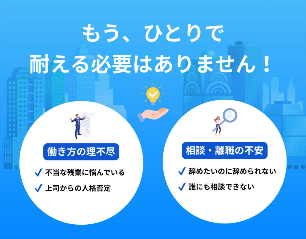もちろんです。現職の問題解決から転職時の トラブル予防まで幅広くサポートします。